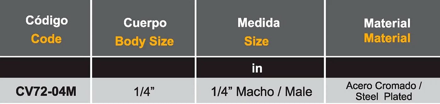 CV72-M Conector Rápido Neumático Macho de 1/4″