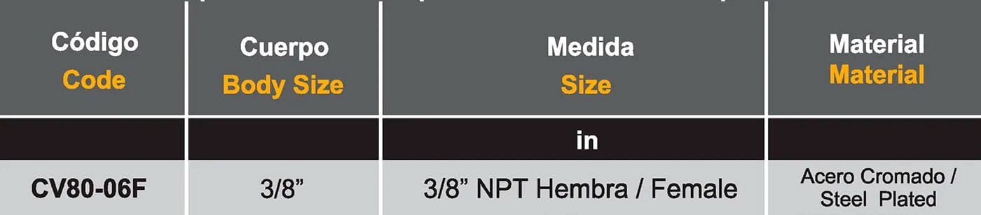 CV80-06SET1 Juego de Acople para Hidrojets con Hembra NPT 3/8″