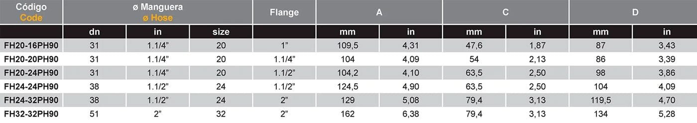 Flage a 90º Código 62 6000 PSI
