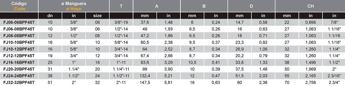 Hembra Giratoria a 45º BSP