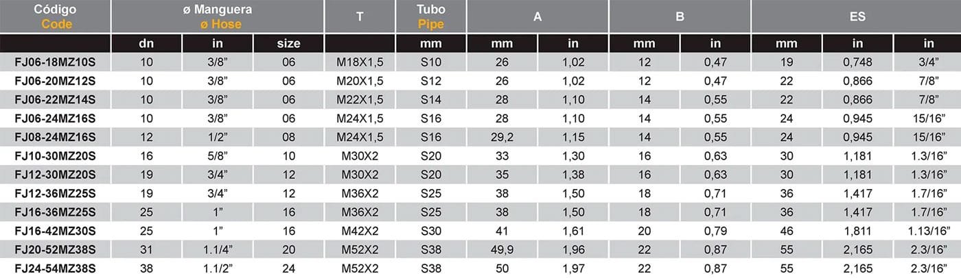 Macho Fijo Métrico Cono 24º Serie Pesada
