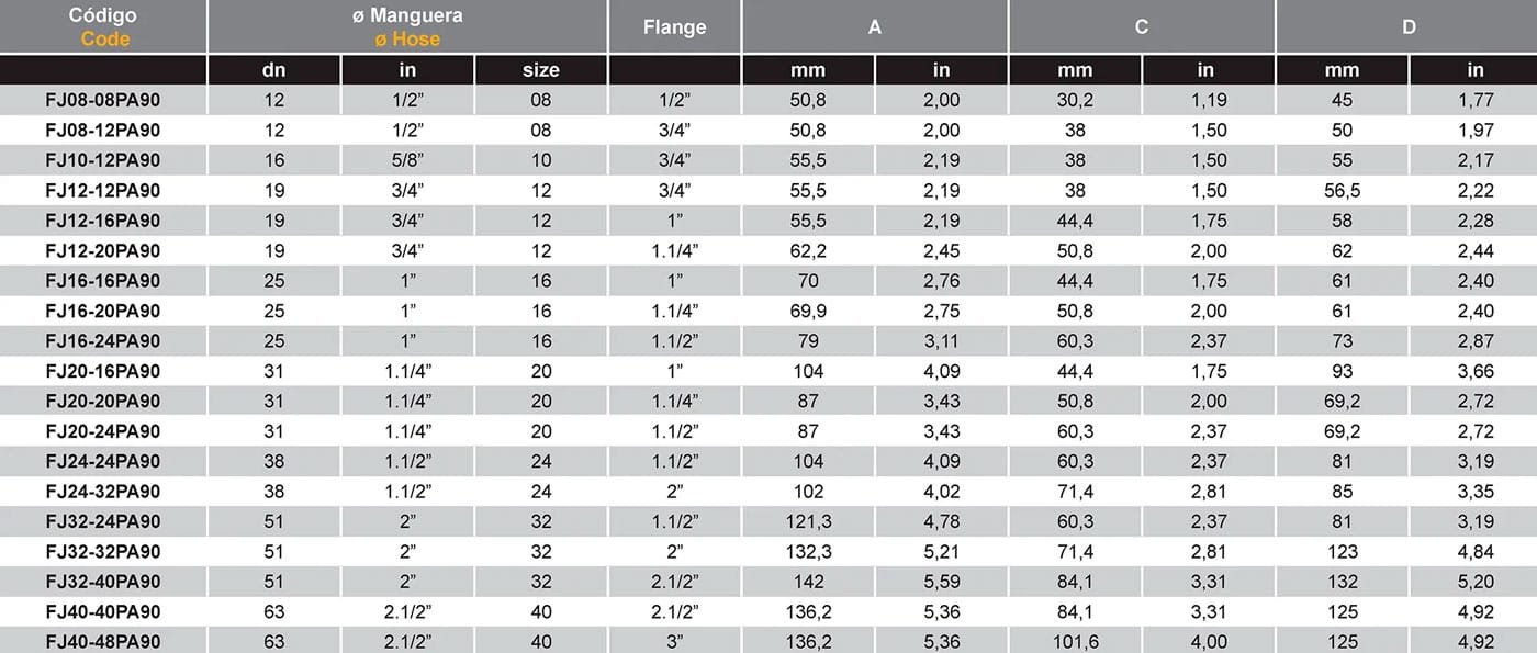 Hembra Giratoria a 90º ORFS