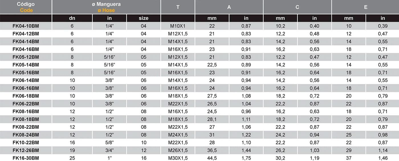 Conexión Banjo Métrico, Sin Pelar