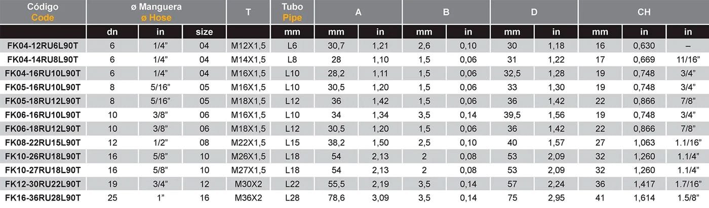 Hembra a 90º Métrica cono 24º Serie Ligera