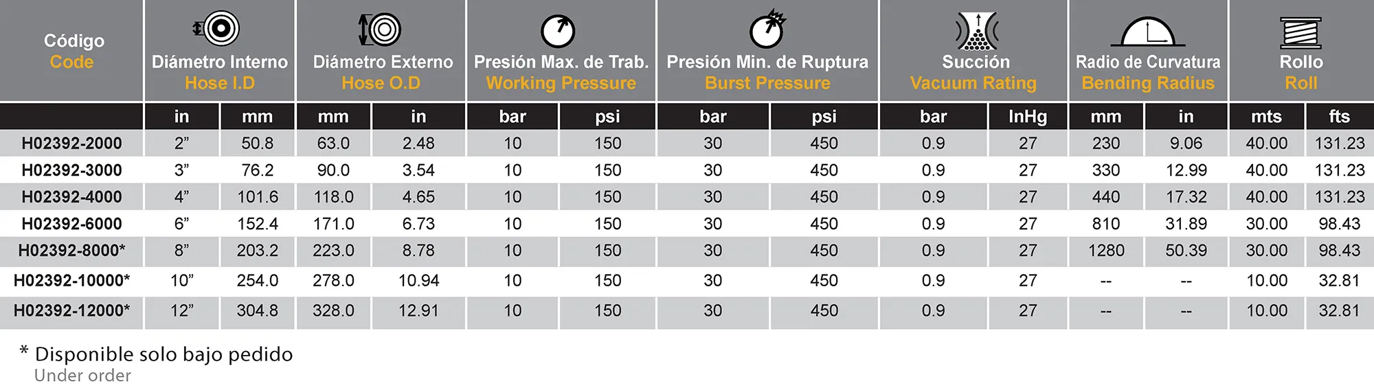 - Tubo Interno: Mezcla de goma sintética NR / SBR