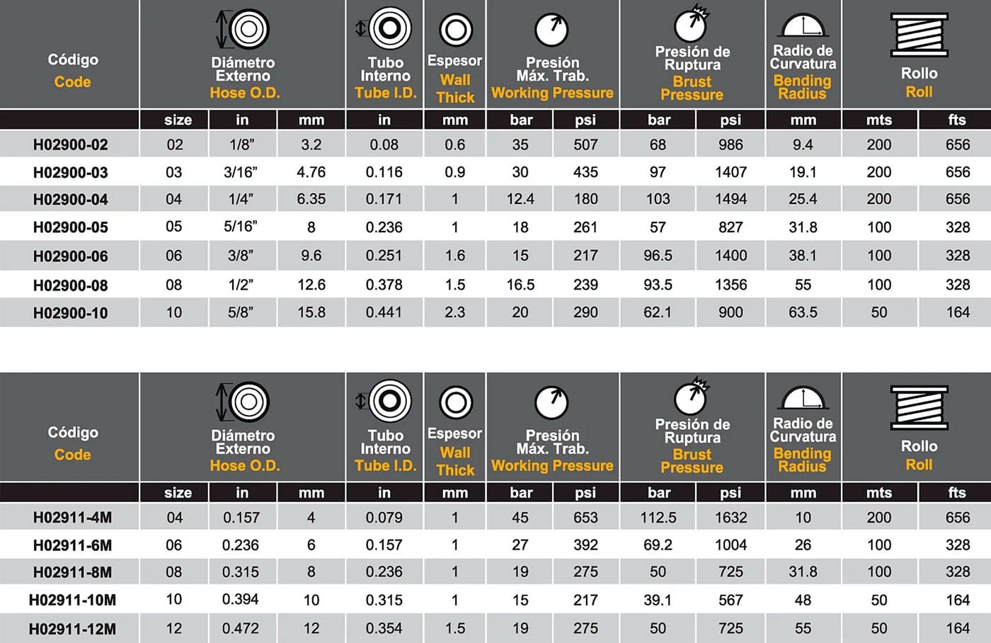 Para usos en sistemas de frenos de aire, combustible, instrumentación y accesorios de aire para equipos móviles.