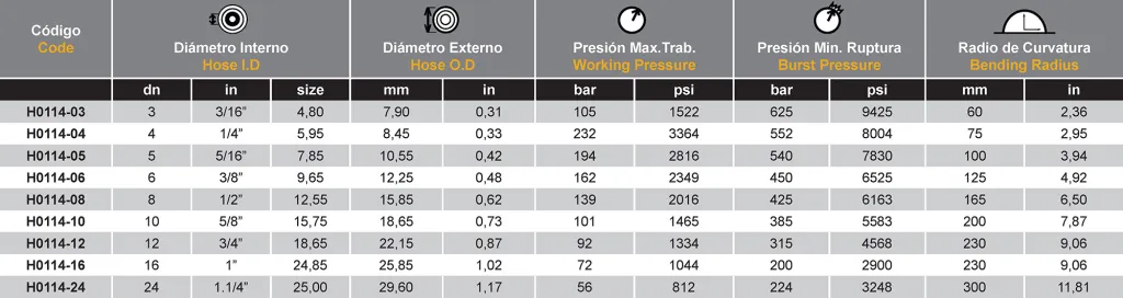 Tubo Interno: PTFE Cubierta: 1 malla de alambre de acero inoxidable 304