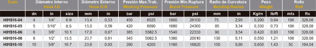 Mezcla de goma sintética resistente a la abrasión, 50% más flexible que una manguera SAE 100R1. Fácil de trabajar e instalar